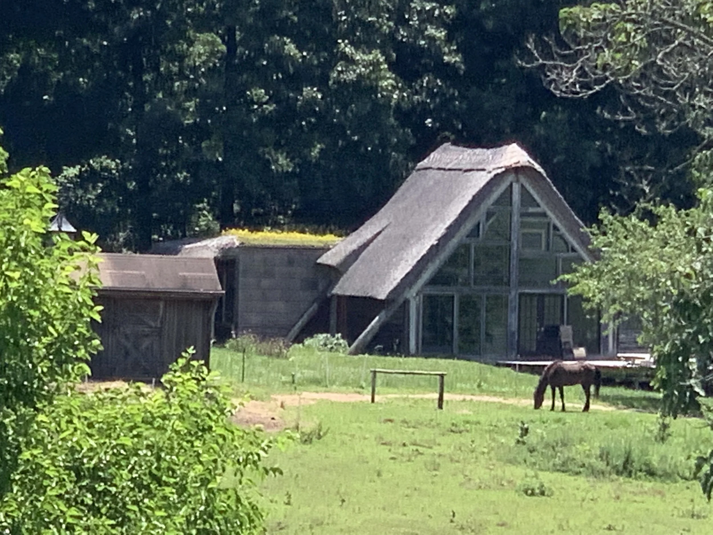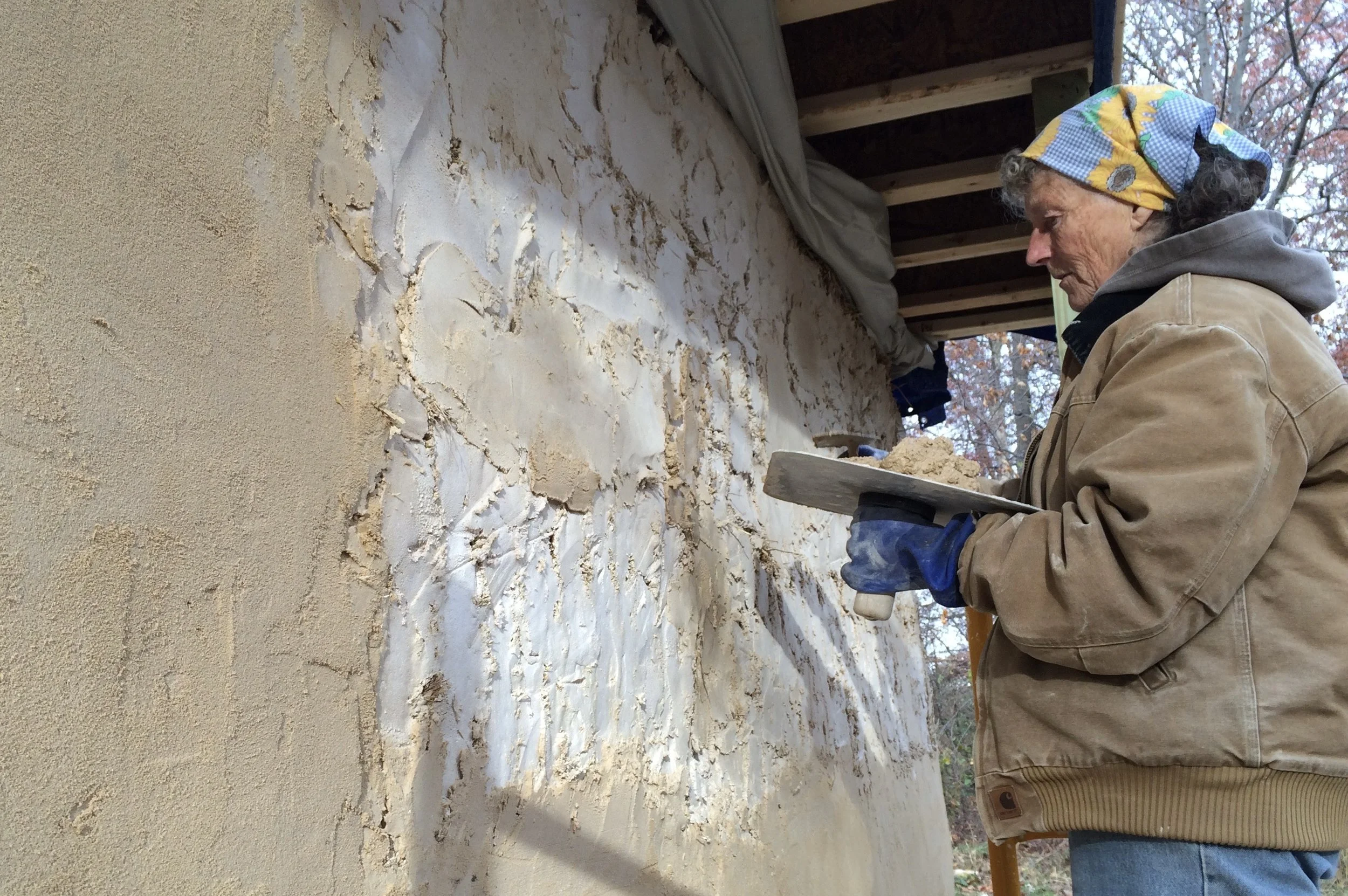 No wood, steel, or concrete in these walls. Just straw bales and lime plaster (lime, sand, water).