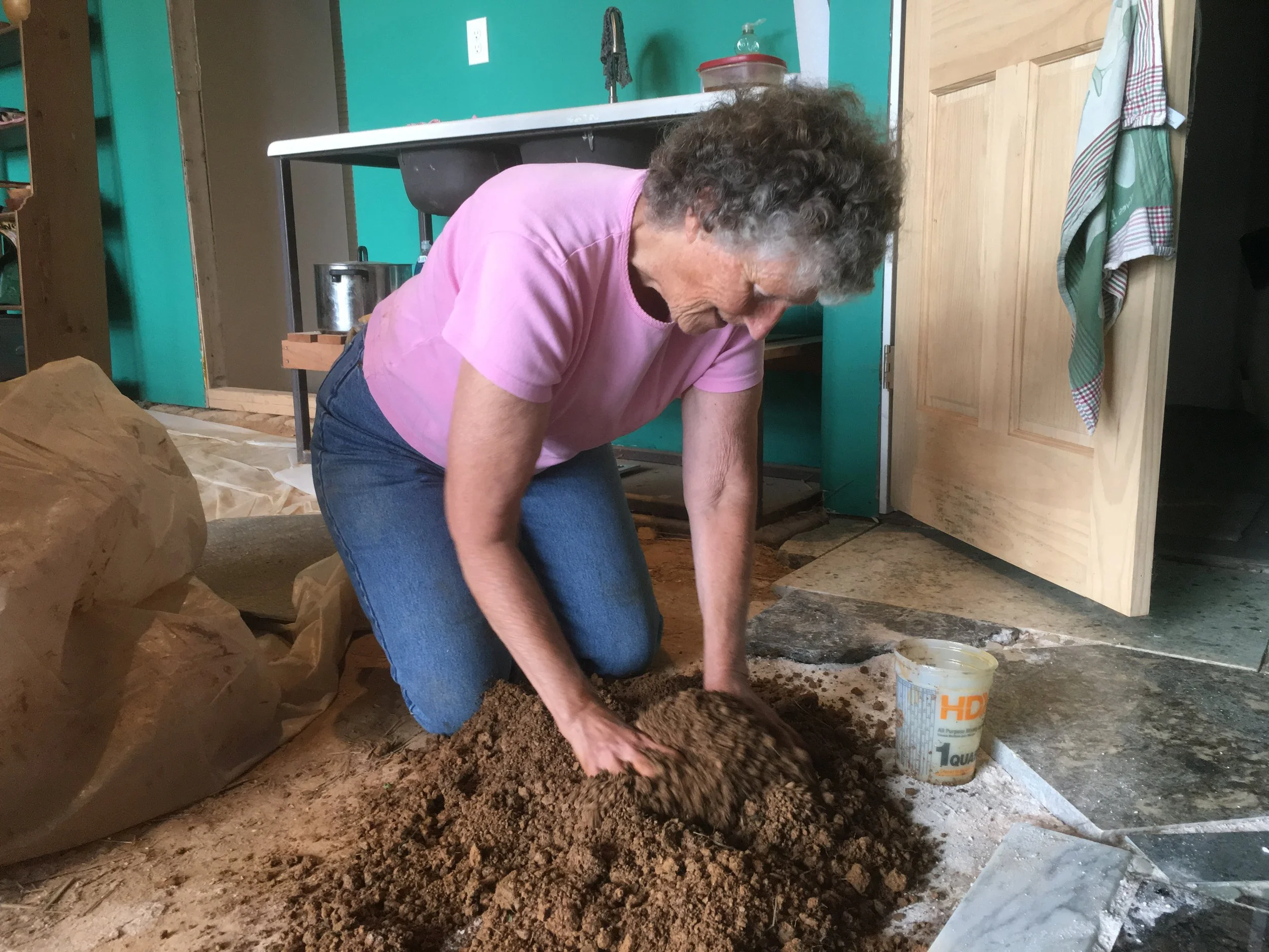 No gravel, cement, or machinery. Just clay from the site, natural oils, pigments and hands and feet